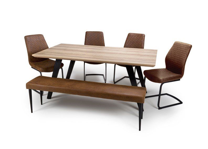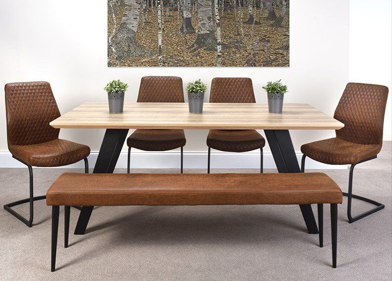 The Brooks range is a modern dining room collection perfect for entertaining. The table has a super tough table top which is heat, scratch and stain resistant. Combined with either benches or chairs, in a quilted faux leather also available in Tan.