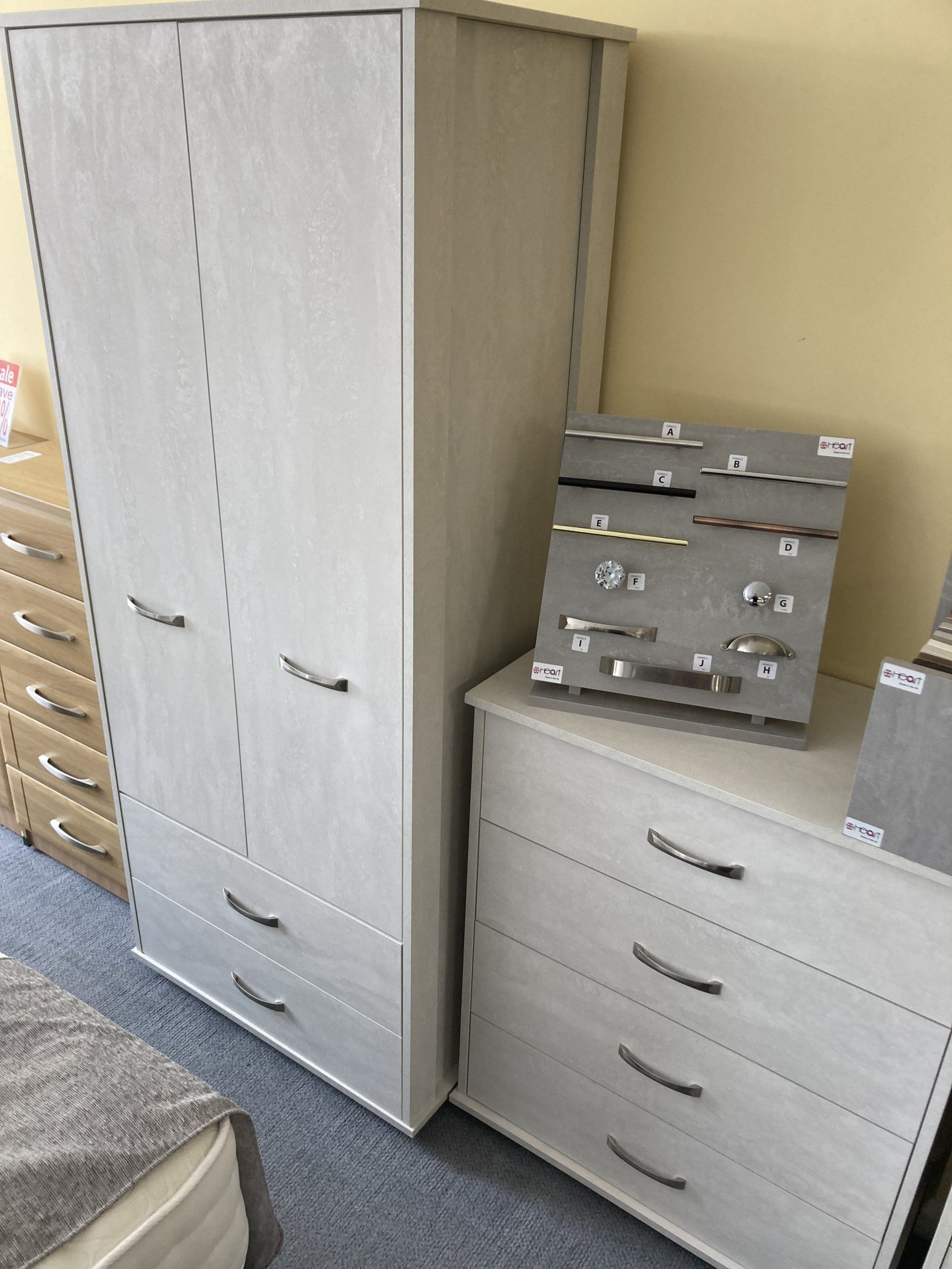 A range of modern bedroom furniture, available in a cement finish, and other colours. A Variety of finished including handles enable this range to perfectly match any décor with your bedroom.