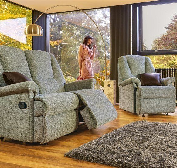 Sherbourne Upholstery Ltd in England. Offered in Petite, Small and Standard sizes on all Recliners, Riser Recliners, Chairs and 2-Seaters, in Small and Standard sizes of 3-Seater and the larger Royale size on all Recliners and Riser Recliners. The inviting back design is complemented by soft, sweeping ‘pillow’ arms and full-width ‘chaise’ seating. Sherborne’s unique TouchStop safety system is fitted to all Riser Recliners. Optional LUMBAR ADJUSTMENT also now available on all Sherborne Riser Recliners.